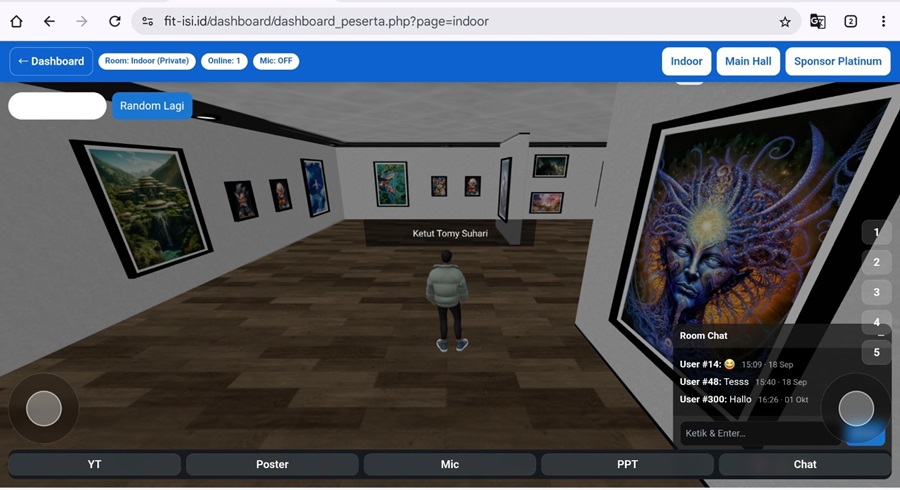 Di balik layar, sistem ini memanfaatkan berbagai teknologi digital terkini yang memungkinkan lingkungan tiga dimensi berinteraksi secara real-time, menampilkan avatar peserta, dan menghadirkan ruang pamer yang dapat dikunjungi kapan pun. Dengan pendekatan ini, FIT ISI 2025 memperluas makna “konferensi hybrid” menuju “konferensi metaverse” yang sejati.