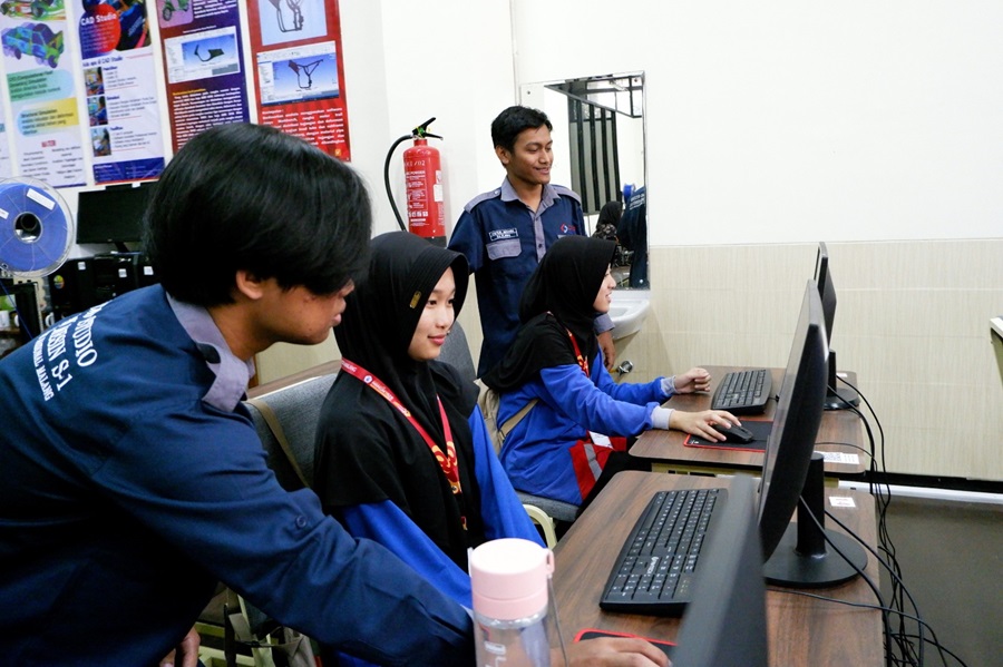 Siswa MA Muhammadiyah 1 Kota Malang belajar desain di CAD Studio, Teknik Mesin S-1, ITN Malang. (Foto: Mita/Humas ITN Malang)