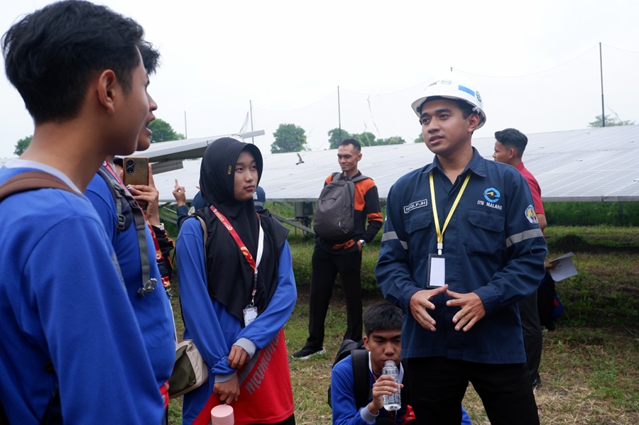 Siswa Mamumtaza mendapat penjelasan tentang PLTS ITN Malang dari mahasiswa Teknik Elektro. (Foto: Mita/Humas ITN Malang)