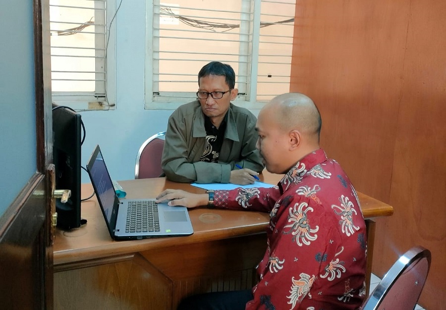 Kepala LPPM ITN Malang, Martinus Edwin Tjahjadi, ST., MGeomSc., PhD., (kiri) bersama salah satu reviewer pada monev internal penelitian 2025. (Foto: Istimewa)